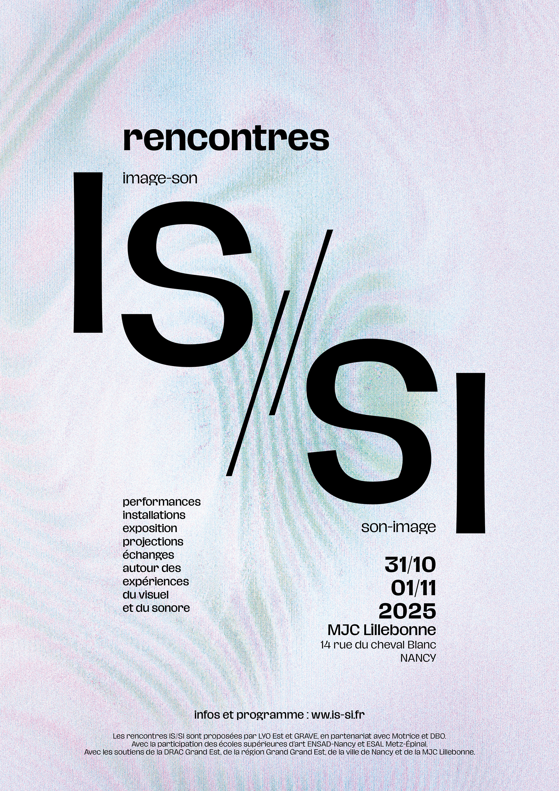 IS//SI est pensé comme un espace d’échange et de transmission : expérimenter, s’informer, croiser les perspectives et interroger les multiples manières dont visuel et sonore se rencontrent.