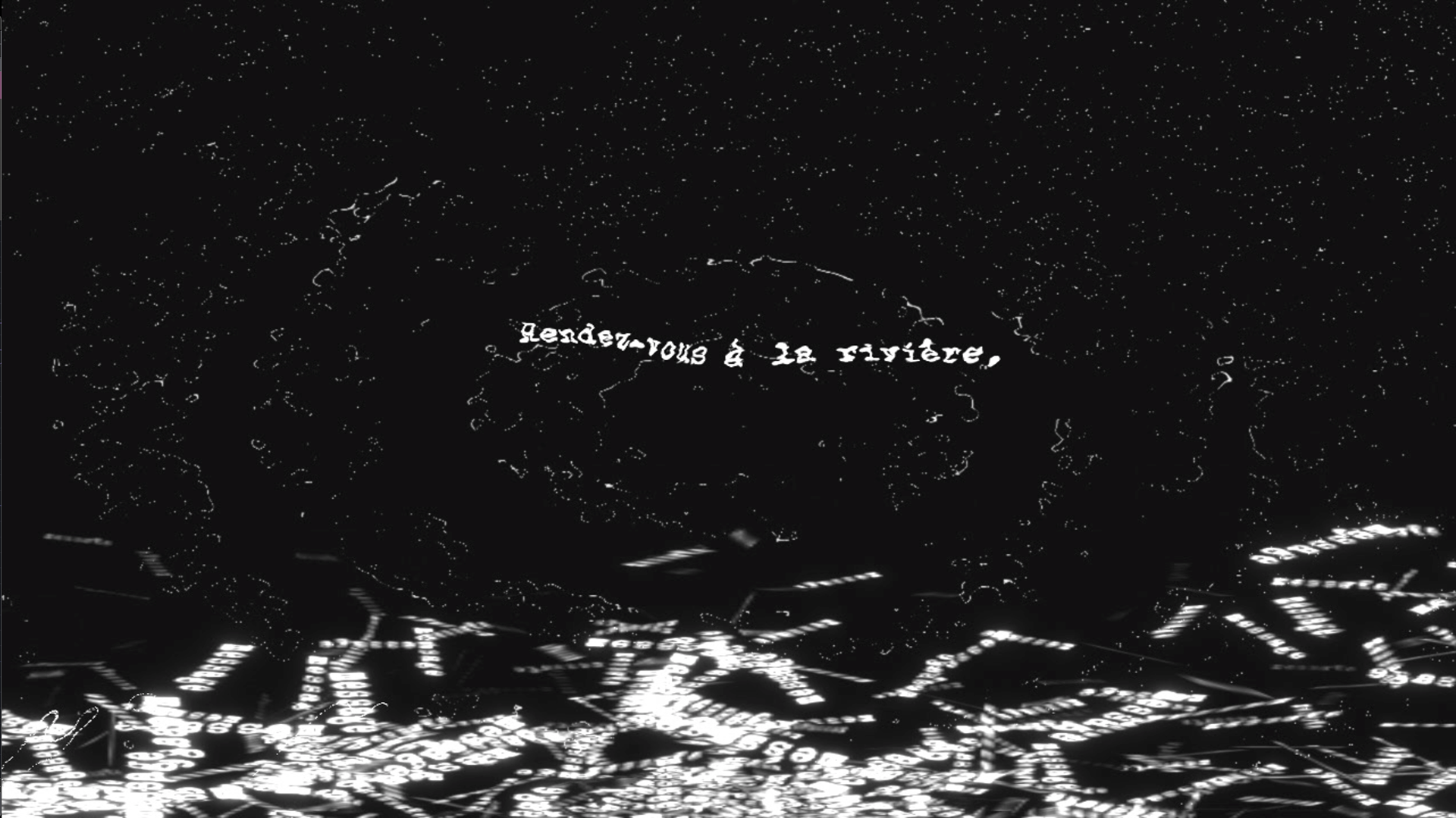 Espace de parole libre entre Slam et La parole est aux riverains. A l’instar du bâton que l’on jette à l’eau et dont on suit le cheminement dans le courant « Rdv à la rivière » invite le spectateur à livrer quelques mots via une IA de reconnaissance vocale, et à les confier aux flots visuels pour la visualisation live d’un texte en cours d’écriture.