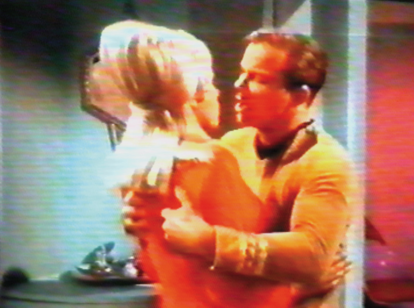 Fascinantes et banales, les rares scènes de baisers de la fameuse série TV «Star Trek» semblent inoffensives, mais ralenties, agrandies, et silencieuses, elles acquièrent une dimension psychologique effrayante.